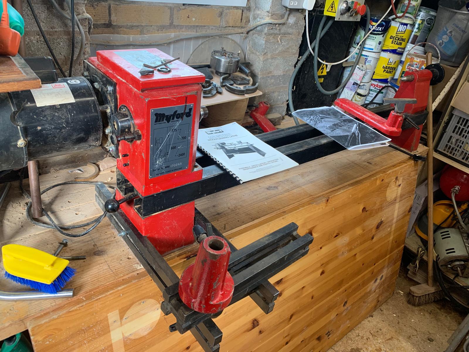 myford mystro lathe, plus large chuck with two sets of jaws & 3 three different size tool rests, face plate, also all extraction hoses and fixing clips, blast gates, flanged spigot and y junction, plus the recon dust extractor, and finally enviracaire air filter system asking £ 450